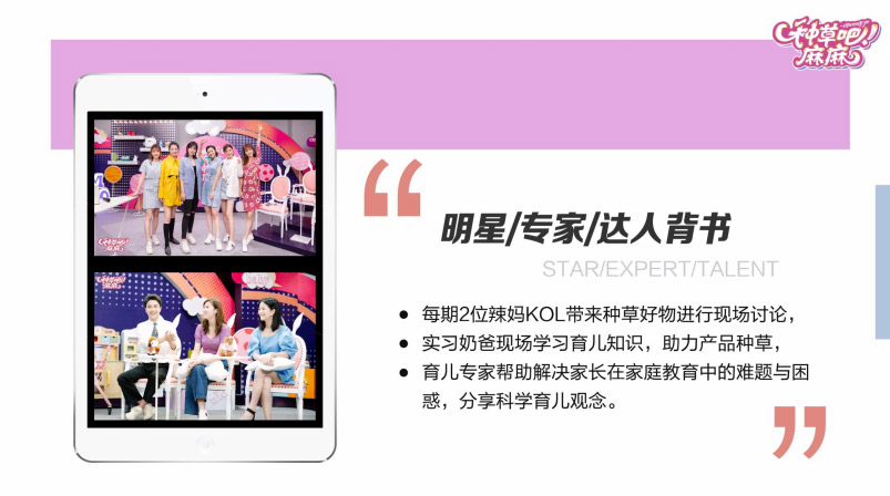 《種草吧麻麻》由王小牙團隊全新重磅打造,是一檔以媽媽為核心的明星家庭生活種草分享類節(jié)目。