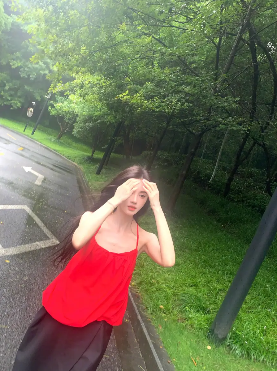 鞠婧祎宣布與絲芭不續(xù)約后首曬照 穿紅色吊帶好美
