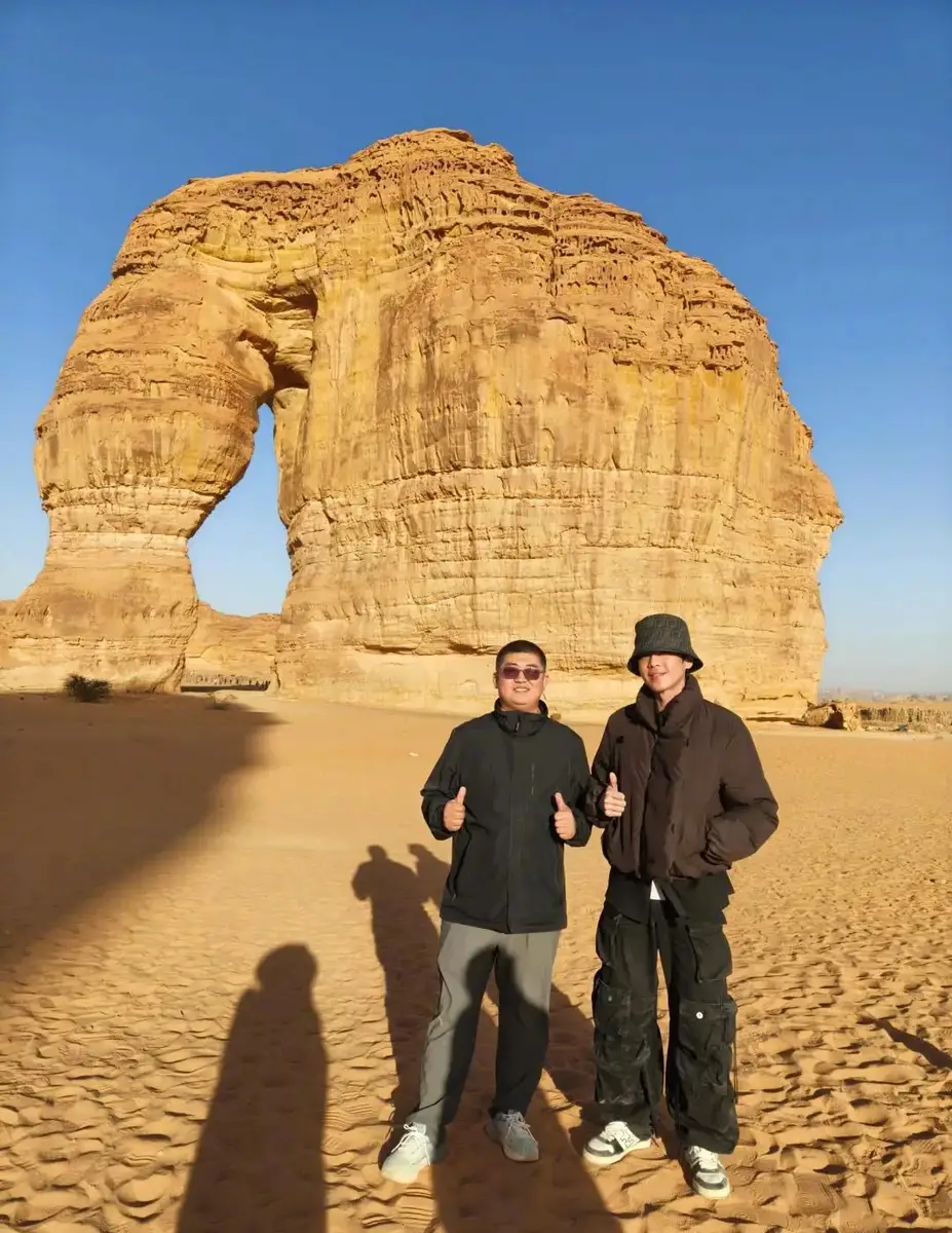 還有導游何老師也曬出與張若昀、唐藝昕夫婦的合照,并表示阿聯(lián)酋的冬天真是太適合旅游了,大家都玩得非常好。他還說:“兩位不僅低調(diào)親和,還充滿了旅行探索的精神,甜蜜互動讓我感受到滿滿的幸福!”