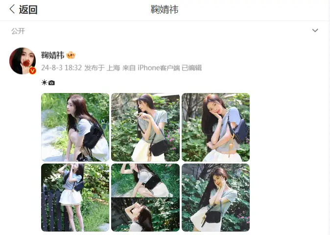 鞠婧祎曬照俏皮靈動顯少女,秀纖細美腿惹人愛,溫柔甜美如初戀