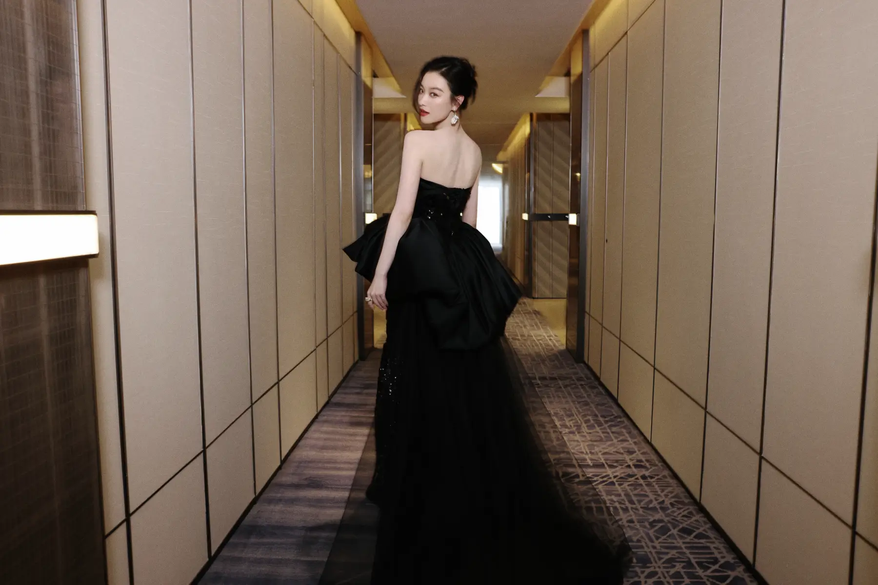 倪妮穿黑色禮裙變身黑天鵝 托腮甜笑溫柔俏皮