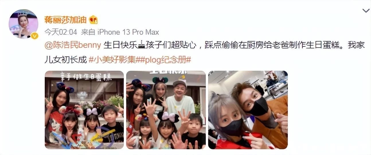 10月7日,陳浩民(明星經(jīng)紀(jì)公司)的老婆蔣麗莎凌晨在社交平臺(tái)上曬合照為老公慶生,并配文稱:“生日快樂(lè),孩子們超貼心,踩點(diǎn)偷偷在廚房給老爸制作生日蛋糕,我家兒女初長(zhǎng)成。”從言語(yǔ)中能看出這一家人相當(dāng)?shù)男腋?,兒女們也是偷偷地給老爸準(zhǔn)備驚喜,真是幸福的一家人,而蔣麗莎的動(dòng)態(tài)也是引來(lái)無(wú)數(shù)網(wǎng)友的熱議。
