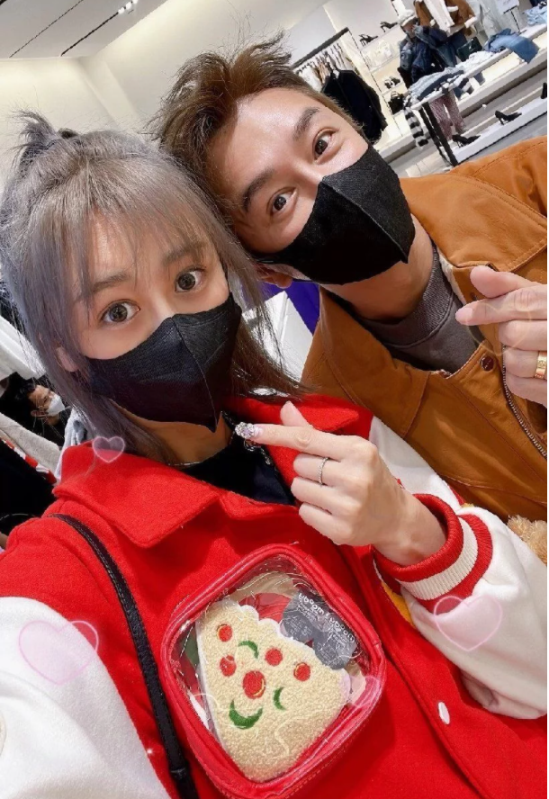 還有兩人的合照,兩人在商場(chǎng)里對(duì)著鏡頭比心,很是恩愛(ài),陳浩民也是將頭靠近老婆,顯得很是甜蜜。