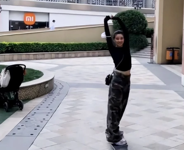 36歲李小萌街頭滑板!二胎后半年恢復(fù)少女身材,倆兒子都酷似王雷