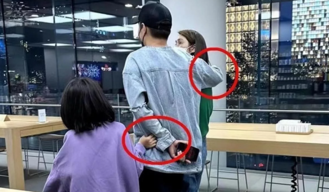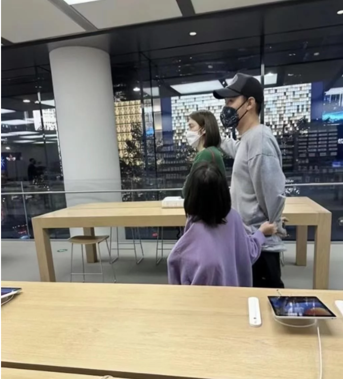 隨后,一家三口走到了售貨臺前,當時售貨員正在解說商品,張晞彤站在了售貨員身側,用右手支撐著頭部,聽得十分認真。而張丹峰和妻子則站在一旁討論其他商品,大概是口罩內霧氣太多,洪欣時不時用手撐開口罩換氣。畫面中,洪欣的腹部明顯突起,網友懷疑她可能懷孕了。