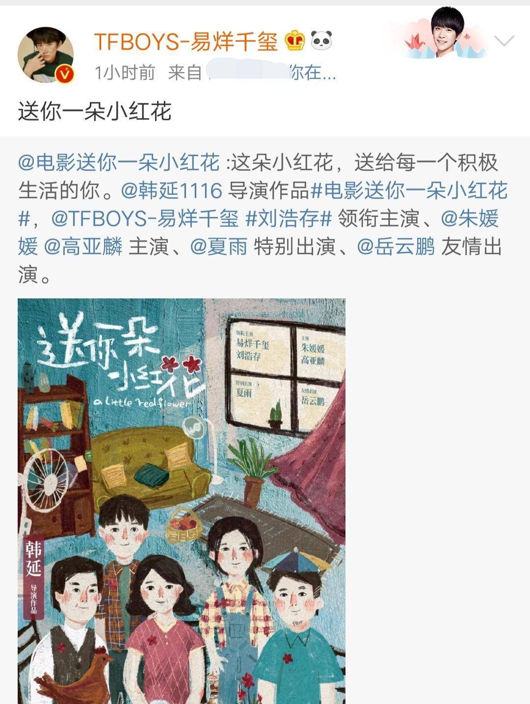 而近日易烊千璽的第二部男主電影《送你一朵小紅花》正式進(jìn)行官宣,從官宣內(nèi)容陣容來(lái)看的,易烊千璽此次仍然是作為男主角,另一位主演是劉浩存,同時(shí)還有朱媛媛、高亞麟、夏雨、岳云鵬參演,這個(gè)陣容還是很不錯(cuò)的,好幾位都是大家所熟知的演技派。據(jù)悉這部劇的導(dǎo)演是曾經(jīng)導(dǎo)過(guò)電影《動(dòng)物世界》、《滾蛋吧!腫瘤君》的韓延,制作班底還是很不錯(cuò)的,制電影質(zhì)量可以得到保證。