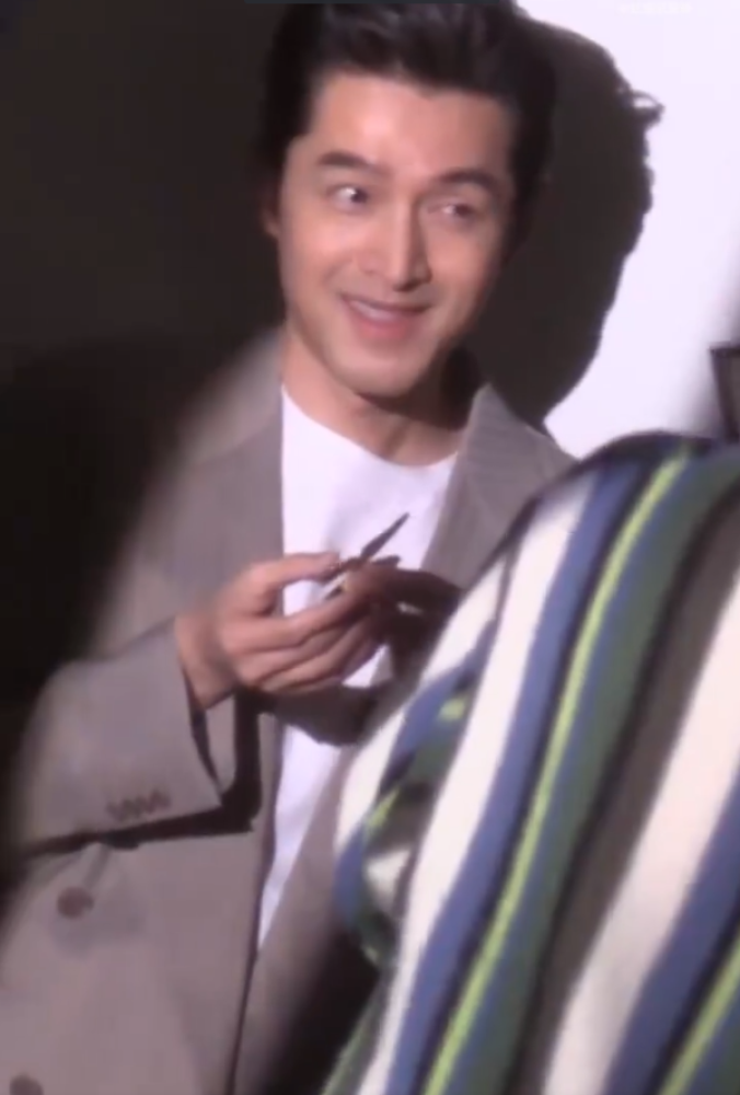 當(dāng)天胡歌身穿剪裁得體灰色西裝,風(fēng)度翩翩的姿態(tài)像極了影視劇中走出的儒雅貴公子,在現(xiàn)場,胡歌配合化妝老師整理造型,在拍攝過程中,胡歌表現(xiàn)沉穩(wěn)自如,面對鏡頭狀態(tài)比較松弛,出片效率也是相當(dāng)高。