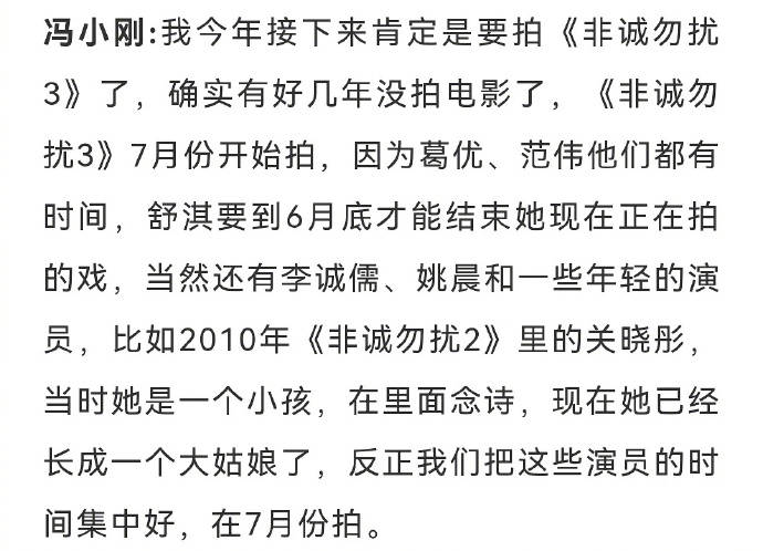 馮小剛透露《非誠(chéng)勿擾3》7月開拍 葛優(yōu)舒淇姚晨等原班人馬回歸