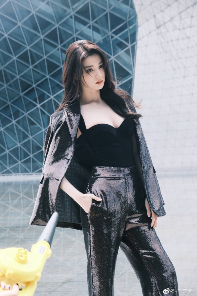 王楚然穿黑色吊帶上衣,披著黑色馬甲,搭配黑皮長(zhǎng)褲,俏臉清麗脫俗,秀眸斜視前方,露出自己傲人的乳溝,這位女星單手插兜的樣子,絕對(duì)性感冷艷!