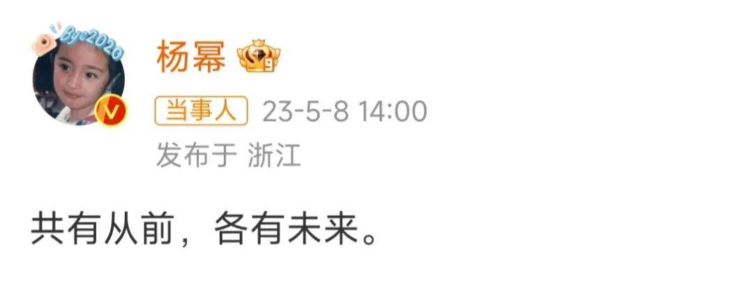5月8日下午,楊冪在社交平臺(tái)上發(fā)布了一句話:“共有從前,各有未來。”