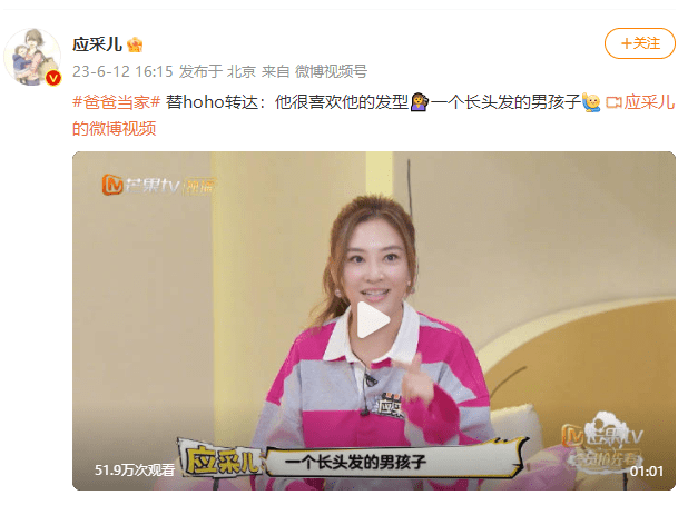 應(yīng)采兒回應(yīng)把小兒子當(dāng)成女孩養(yǎng):會(huì)讓他繼續(xù)留長發(fā)
