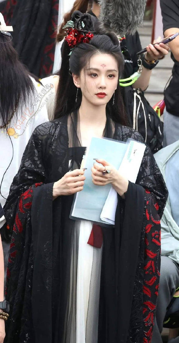 6月24日,一組劉詩詩(明星經(jīng)紀(jì)公司)新劇古裝路透曝光,照片中劉詩詩黑裙紅唇造型冷酷。