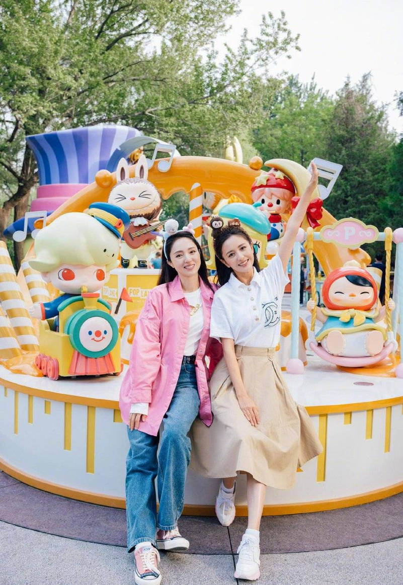 佟麗婭董璇霍思燕暢玩游樂園 親密貼貼笑容明媚
