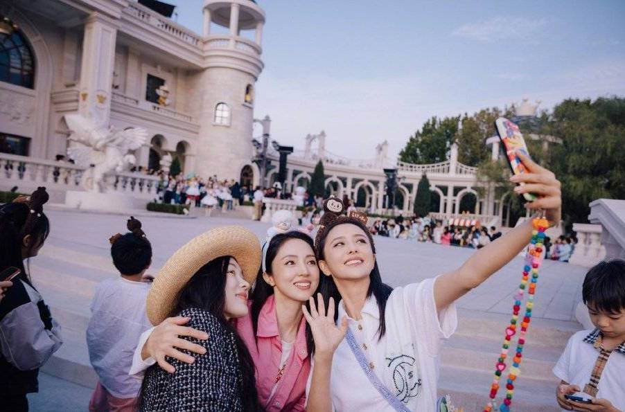 9月24日,佟麗婭曬出與董璇、霍思燕一同逛游樂園的照片,三個(gè)人貼貼自拍笑容甜美,狀態(tài)似少女。