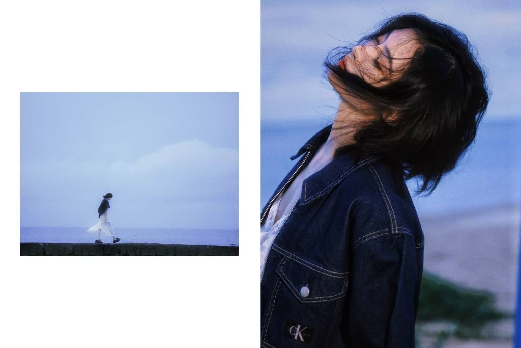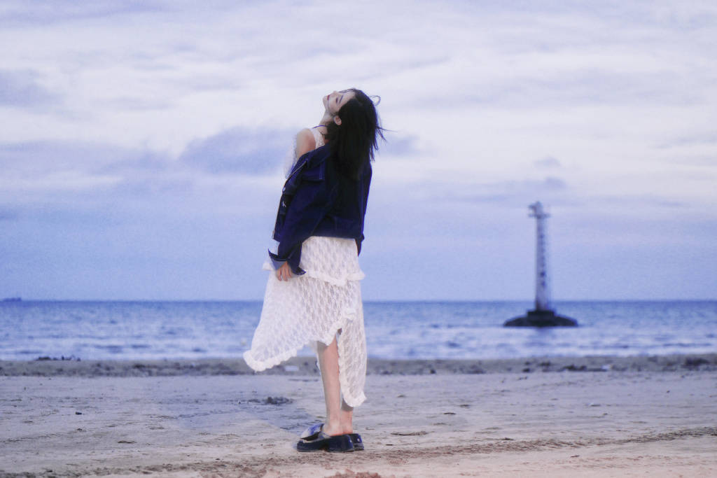 許佳琪海邊漫步感受夏末微風(fēng) 白裙搭牛仔衣有個性
