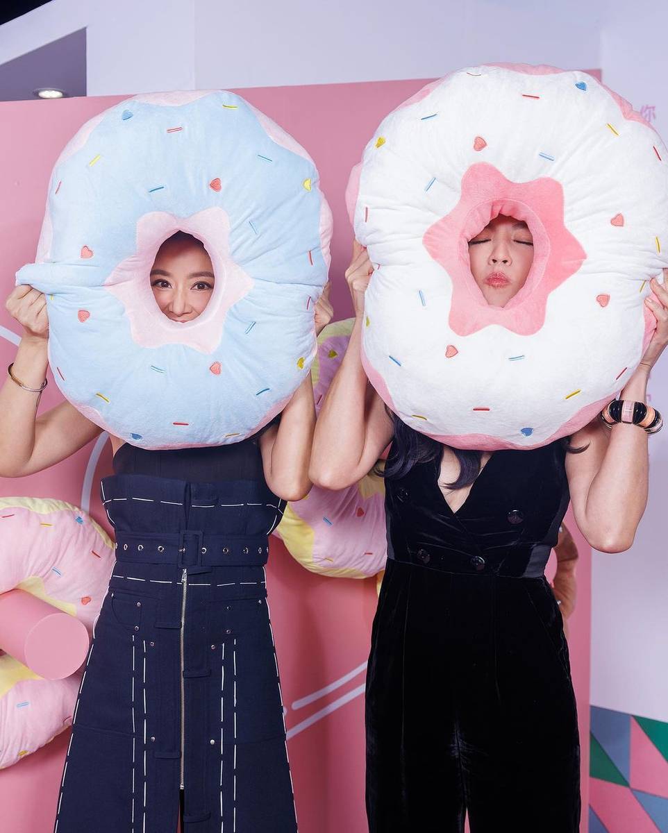 林心如和林熙蕾擁抱合照,林熙蕾著深V套裝性感迷人。