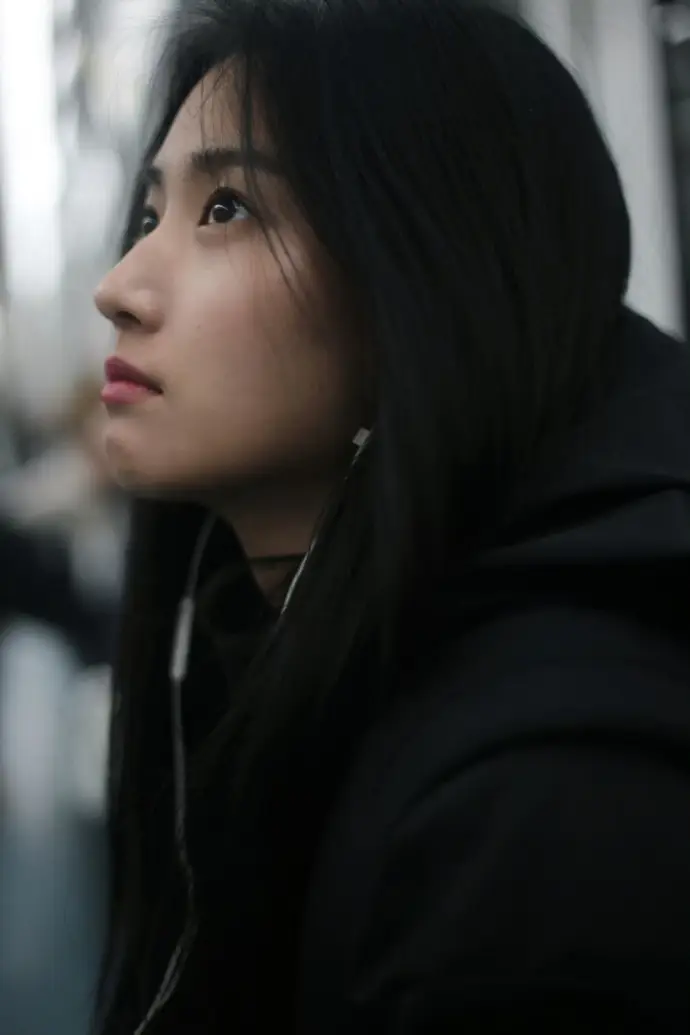 盧昱曉戴有線耳機(jī)文藝隨性。