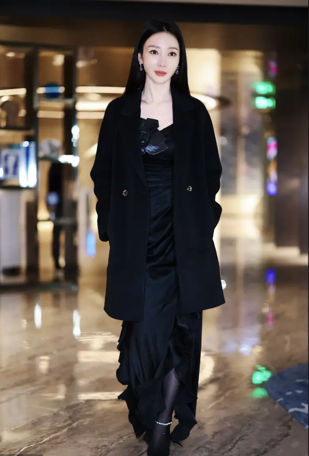 柳巖結(jié)束錄制現(xiàn)身酒店,著黑色系裙裝氣場(chǎng)十足。