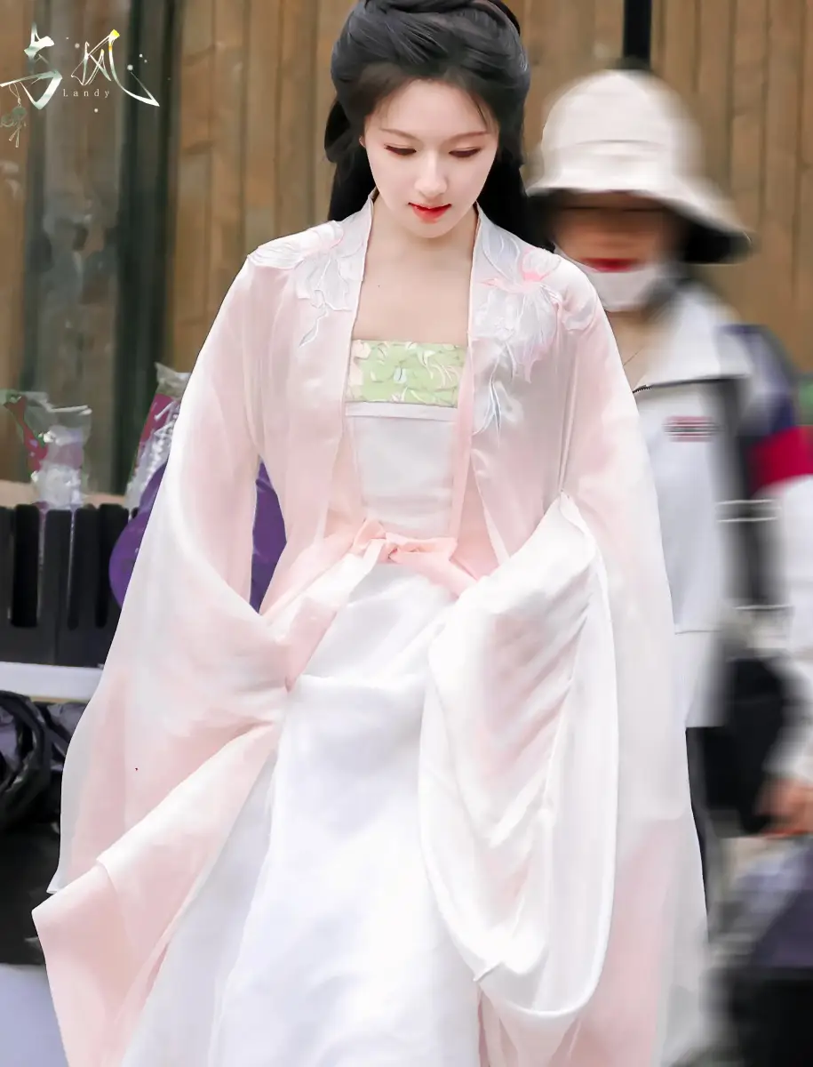 李蘭迪穿粉色古裝宛如大家閨秀。