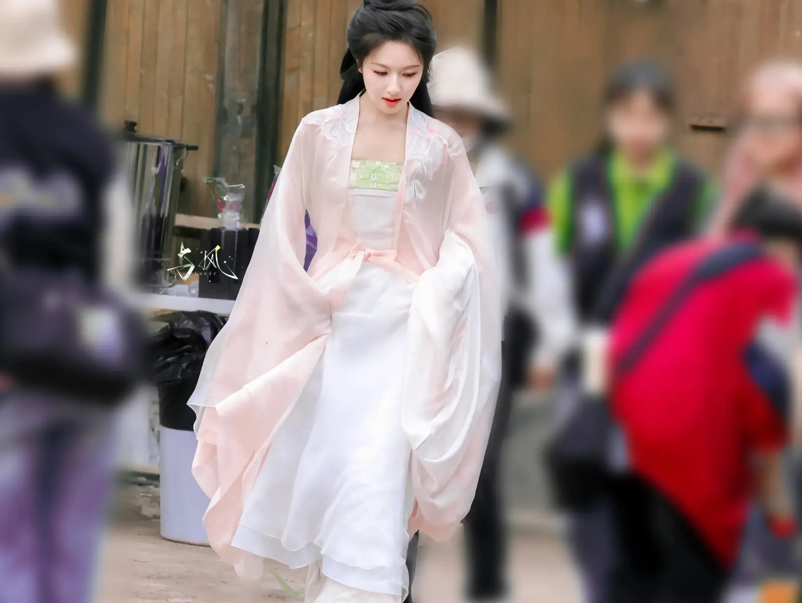 日前,李蘭迪拍攝新劇的路透照曝光,照片里的她穿粉色古裝,匆匆前行,氣質(zhì)溫柔。
