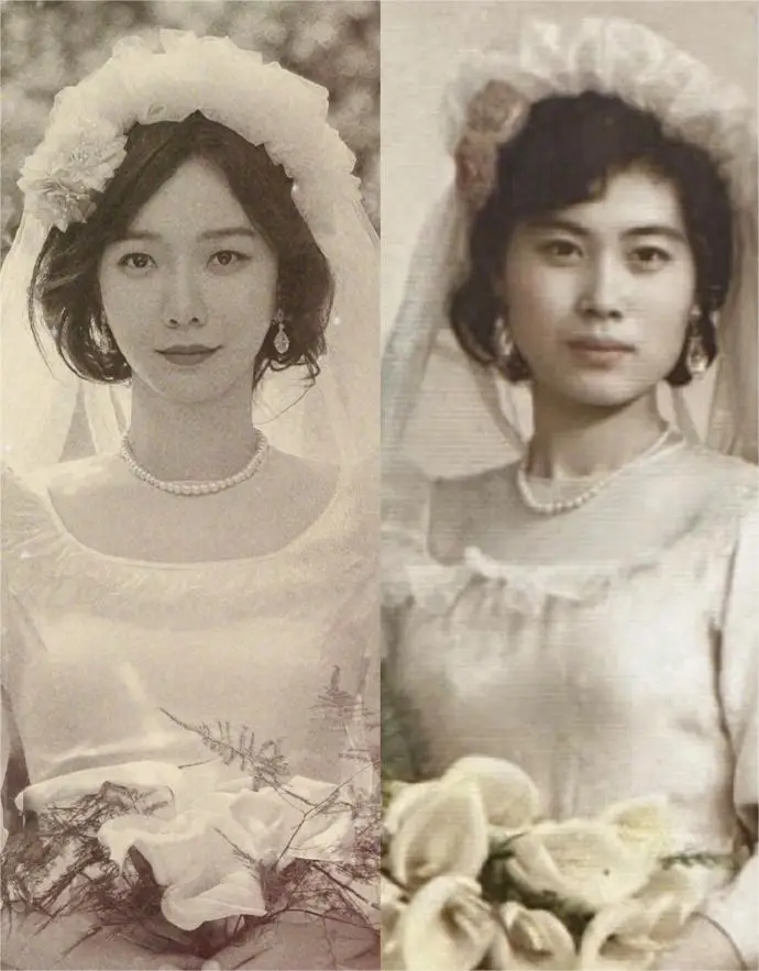王珞丹的媽媽復(fù)古式婚紗顏值高。