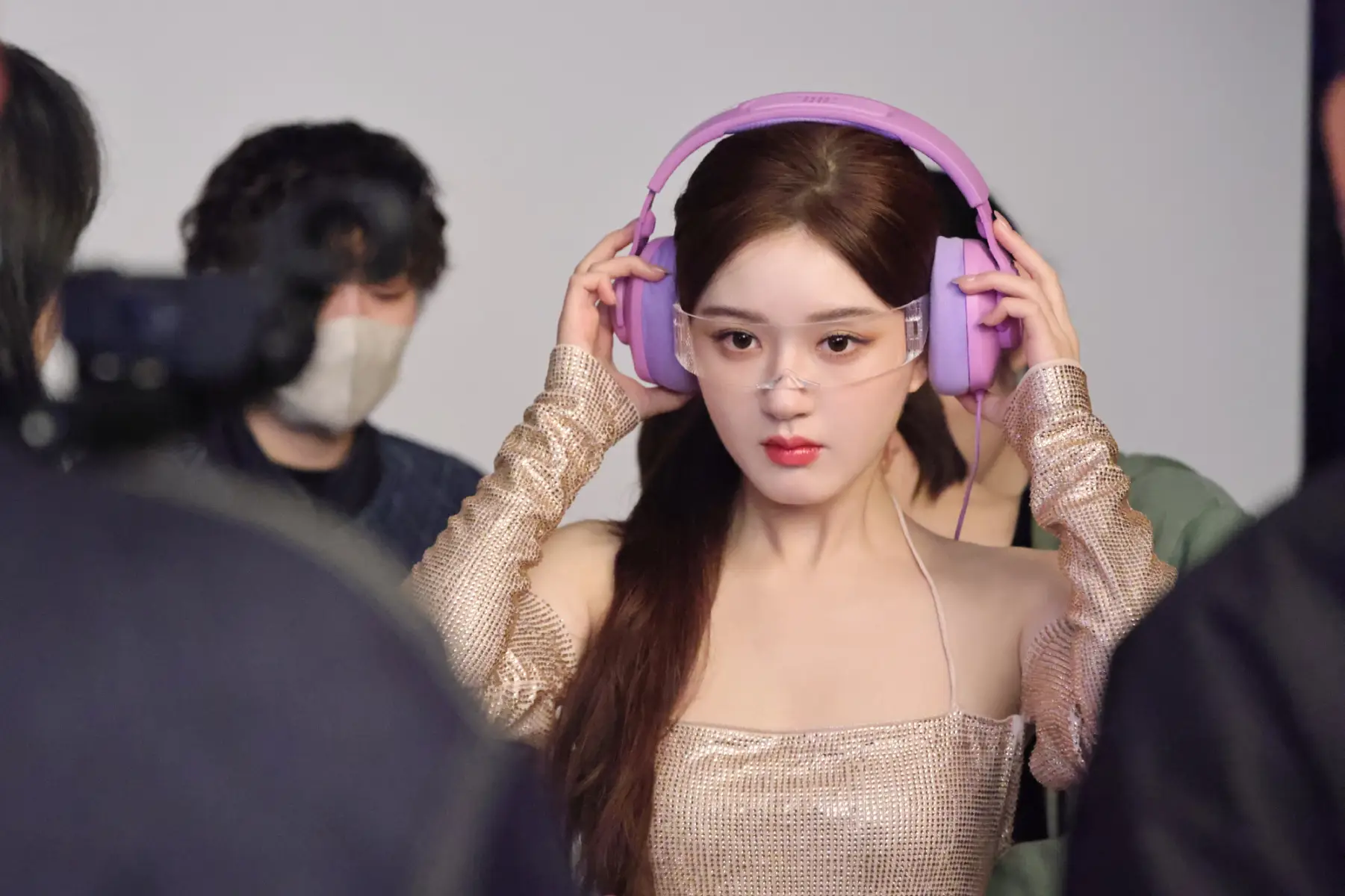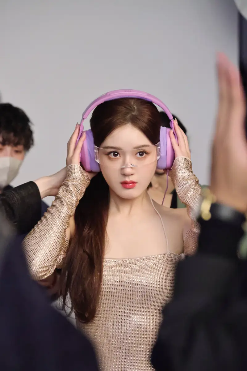 趙露思戴紫色耳機(jī),潮流時(shí)尚。