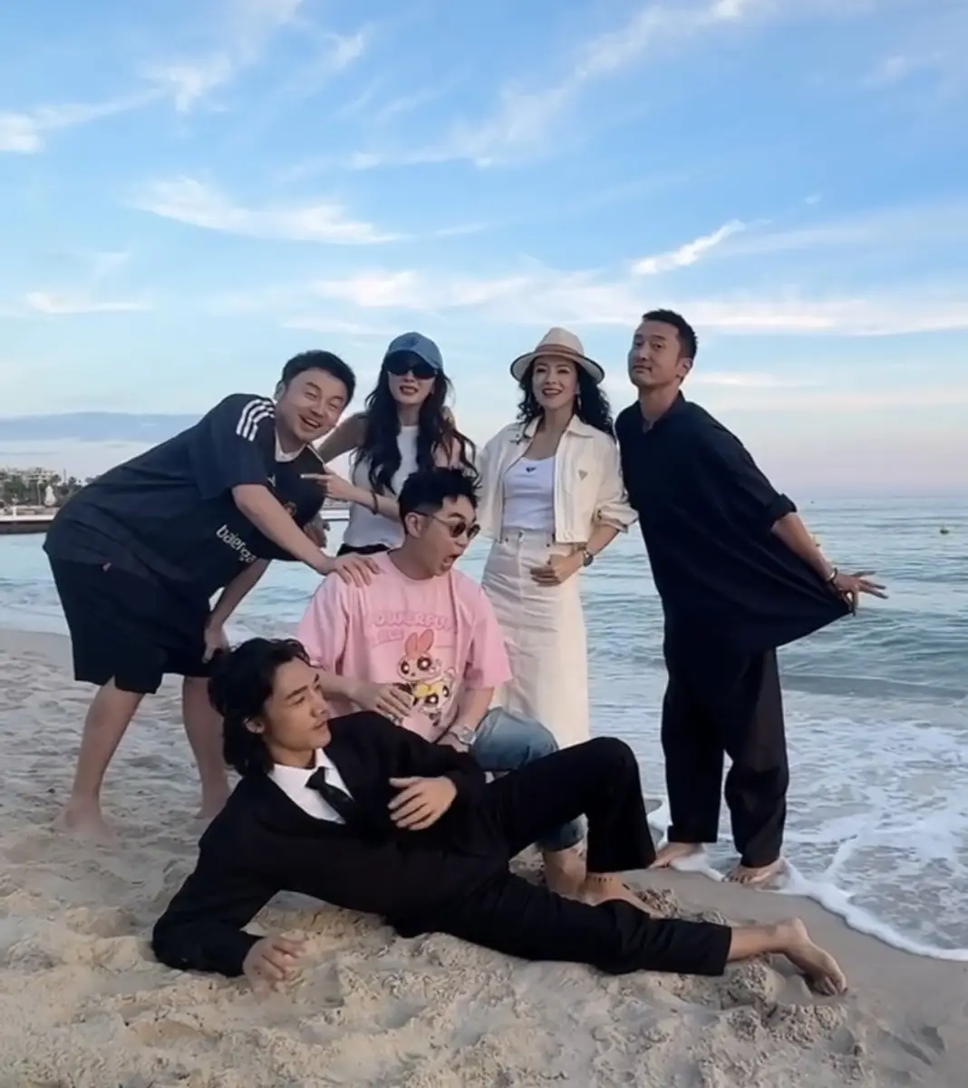 5月26日,章子怡在社交平臺曬《醬園弄》劇組合照,和楊冪、雷佳音、大鵬、此沙、王傳君沙灘玩鬧,氛圍超好。