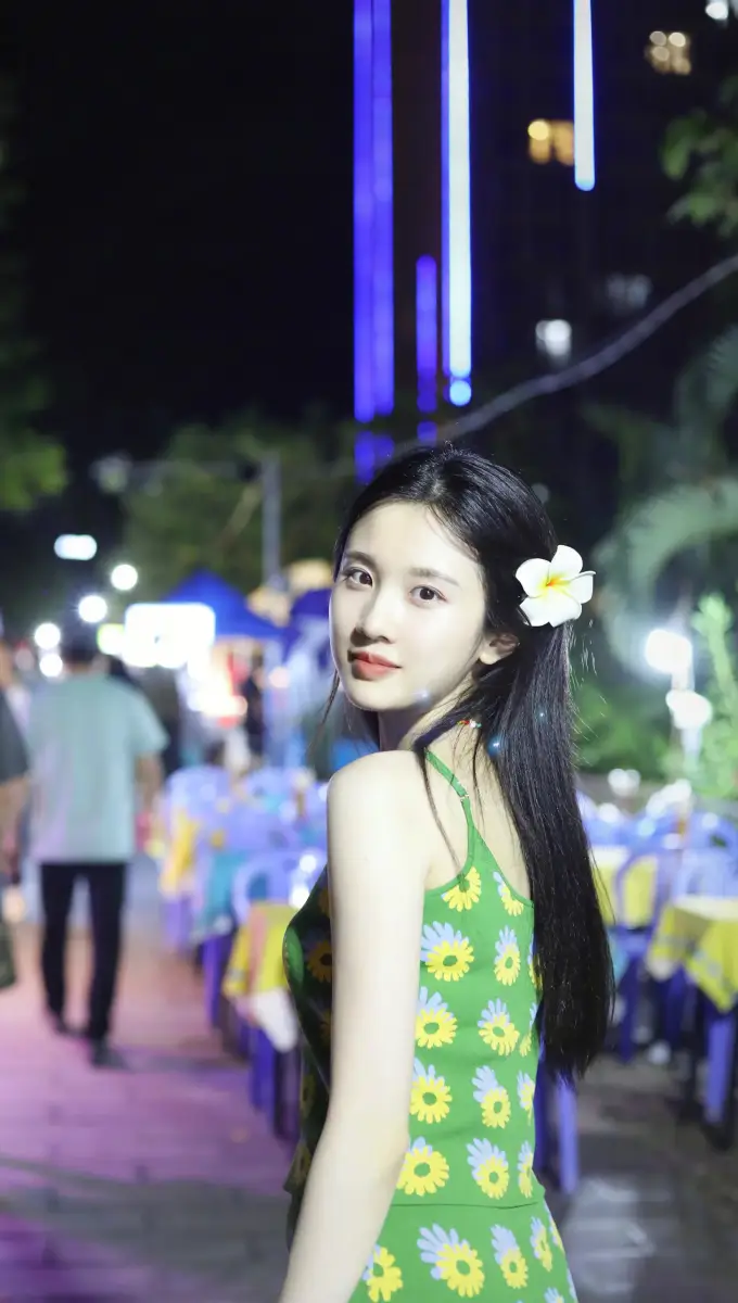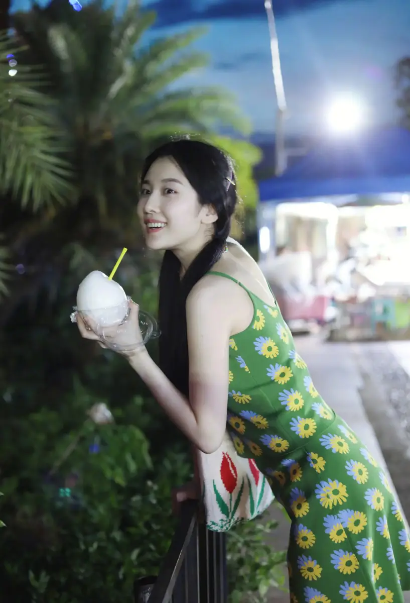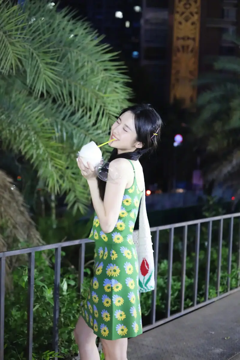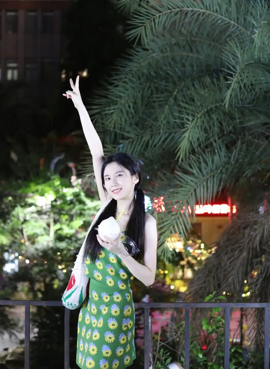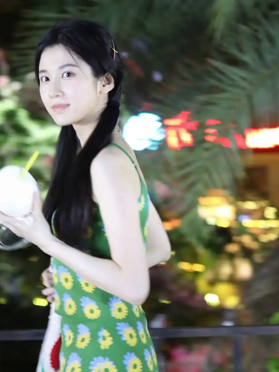 7月17日,張慧雯(明星經(jīng)紀(jì)公司)曬出一組夜市玩樂的照片。她扎著可愛的雙馬尾,身穿綠色印花裙,俏皮活潑。