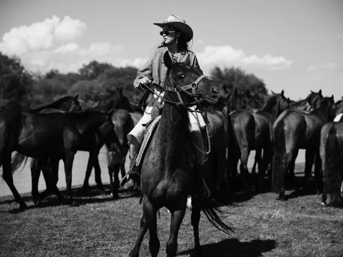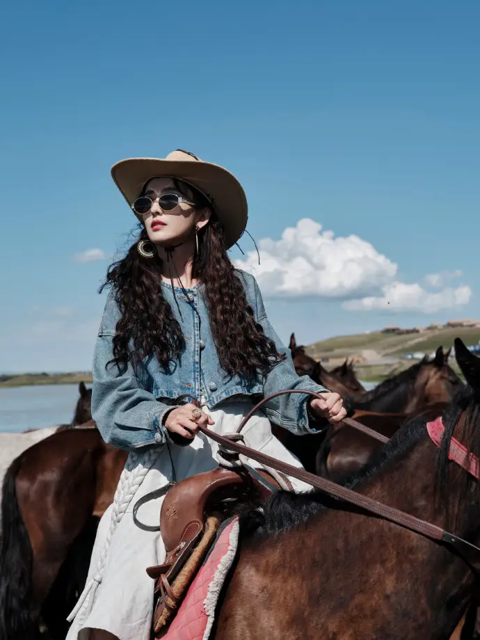 佟麗婭化身草原公主騎駿馬 頭戴牛仔帽酷颯有型