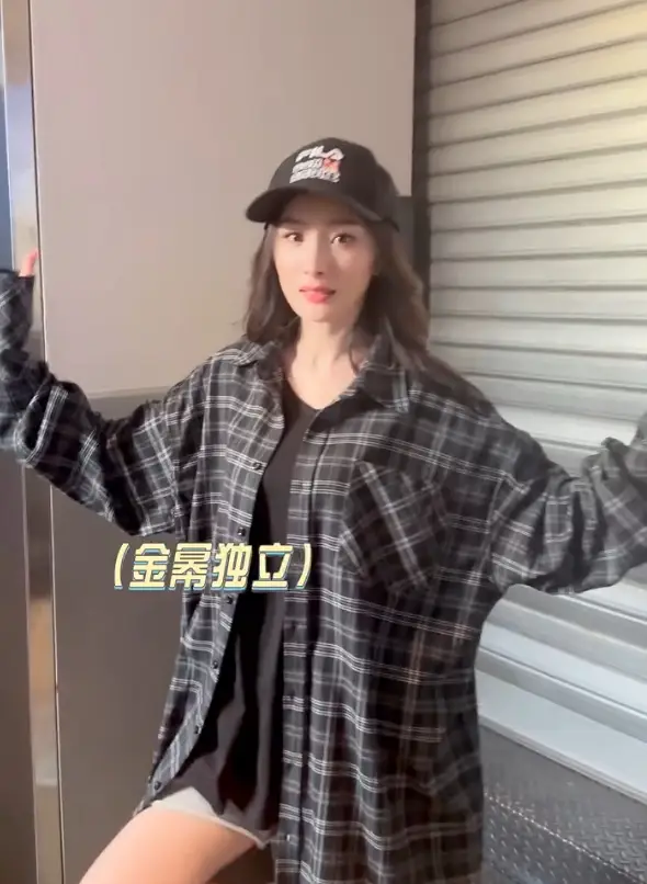 楊冪下班后展示“金雞獨立”,活潑可愛。