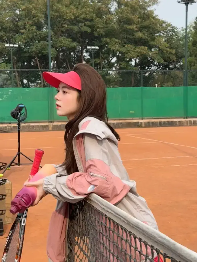 趙今麥打網(wǎng)球運(yùn)動(dòng)感十足 戴粉色遮陽帽活力四射