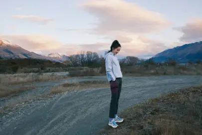 劉詩(shī)詩(shī)穿運(yùn)動(dòng)套裝漫步野外 放空自我與自然共鳴