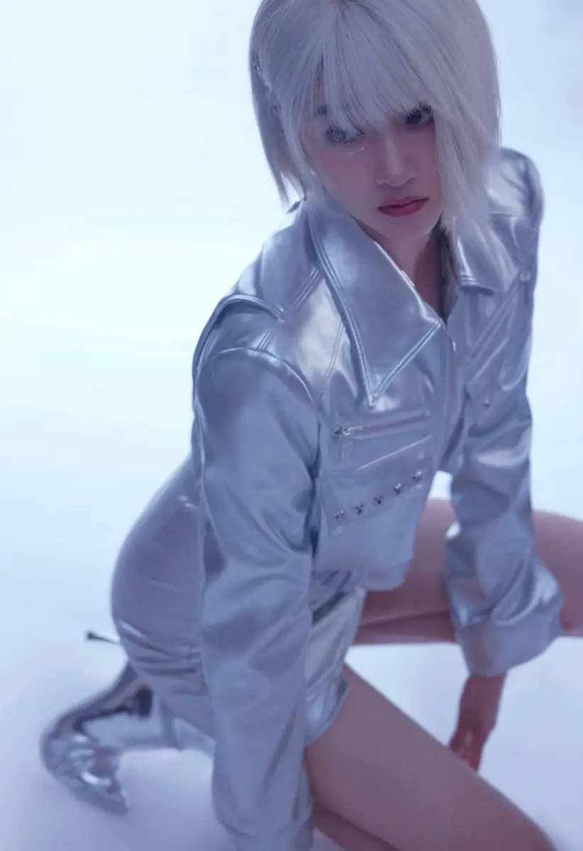 她一身液態(tài)金屬套裝光澤緩緩流動,詮釋潮酷姿態(tài)。