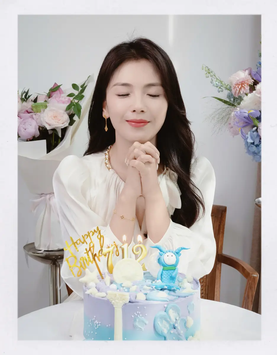 47歲劉濤拍慶生美照心情好!雙手合十許愿笑容甜美