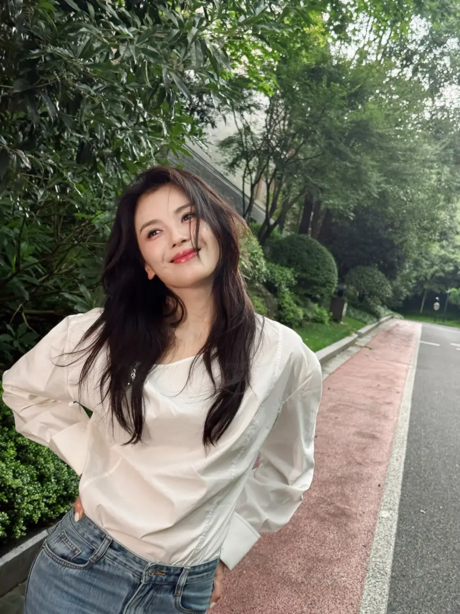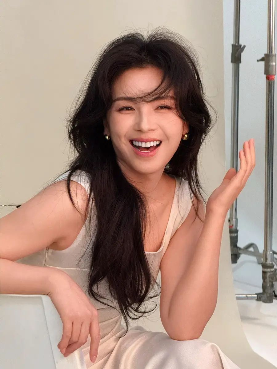 劉濤綻放燦爛笑容,明媚動(dòng)人。
