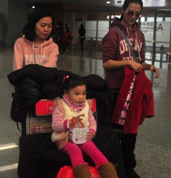 2014年02月19日上海,早前蔡少芬?guī)е鴲叟靶珗A”張楚兒現(xiàn)身機(jī)場(chǎng)。當(dāng)日,蔡少芬戴著黑超推著行李走出機(jī)場(chǎng),女兒“小湯圓”張楚兒則是坐在行李車上可愛的玩耍,看到有人偷拍,萌娃也是很有鏡...