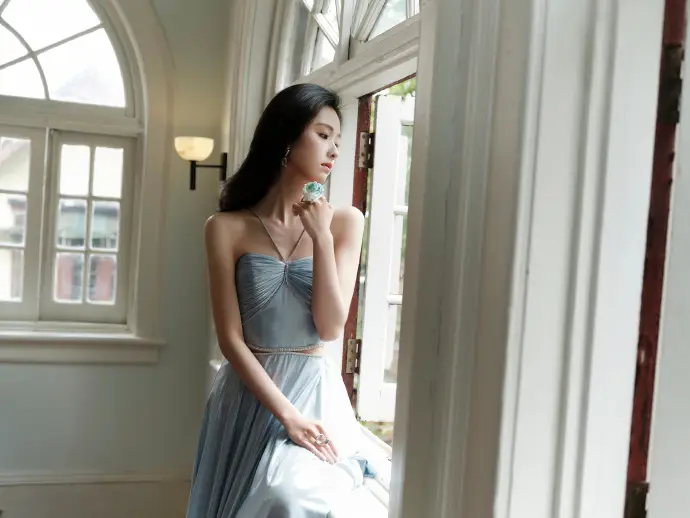 陳都靈穿薄荷色長裙美如人魚 優(yōu)雅清麗自帶書卷氣