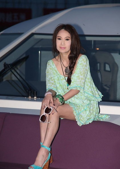 溫碧霞游艇上推銷眼睛 露香肩秀美腿