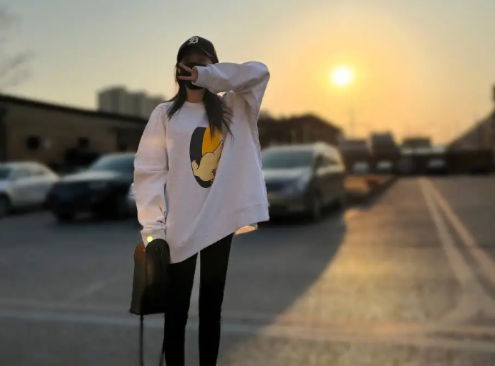 楊冪曬夕陽下班隨拍心情舒暢 穿大碼衛(wèi)衣簡單美好