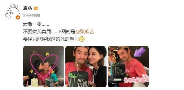 8月23日,袁弘(明星經(jīng)紀公司)在社交平臺上曬出張歆藝與兒子為自己慶生的全家福照,好幸福的一家三口!