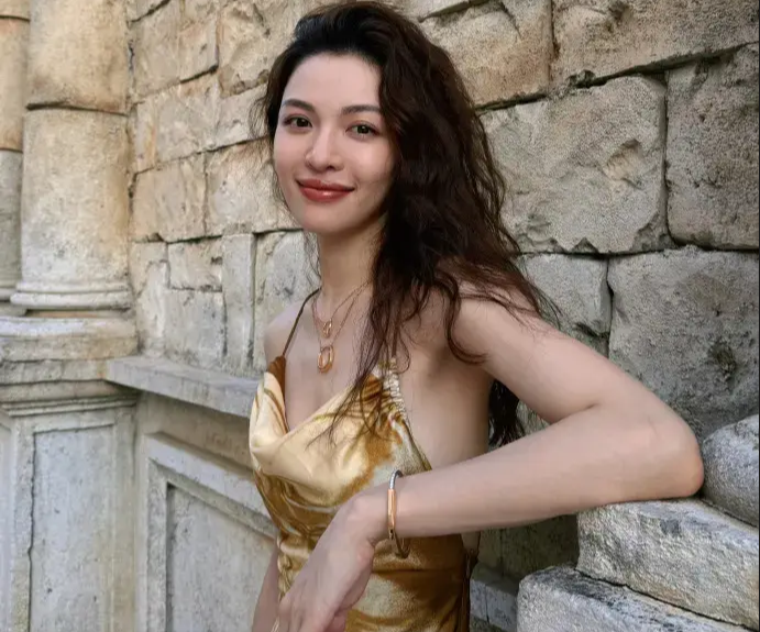 鐘楚曦穿金色吊帶裙漫步澳門 夕陽下微笑氣質(zhì)卓越