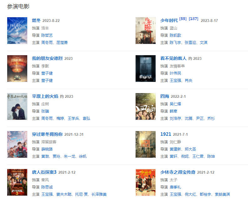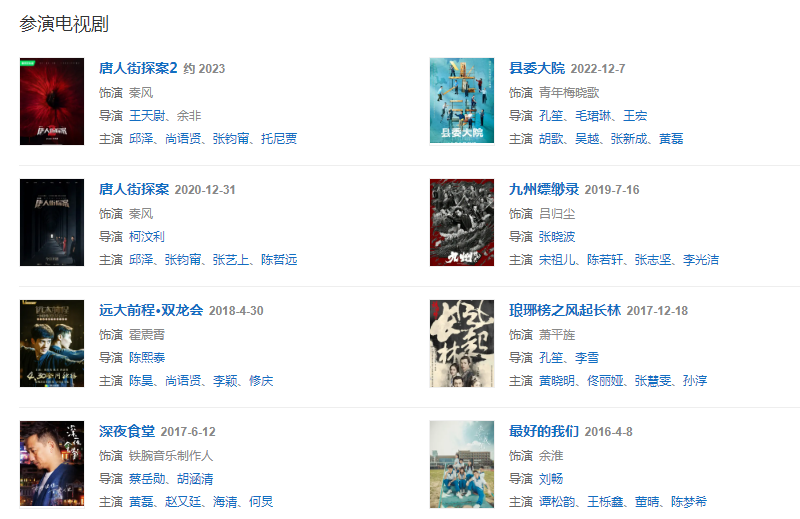 代表作品:唐人街探案、北京愛情故事、最好的我們、瑯琊榜之風(fēng)起長(zhǎng)林、九州縹緲錄、唐人街探案2、唐人街探案3、一點(diǎn)就到家