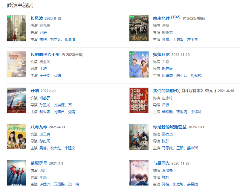 代表作品:開端、你是我的城池營壘、平凡的榮耀、夏至未至、旋風(fēng)少女、匆匆那年、誰的青春不迷茫