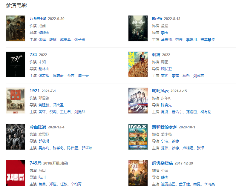 代表作品:樹讀、流星、醒著、心引力、摩天輪的思念、長城、解憂雜貨店、天坑鷹獵、749局、重生之門