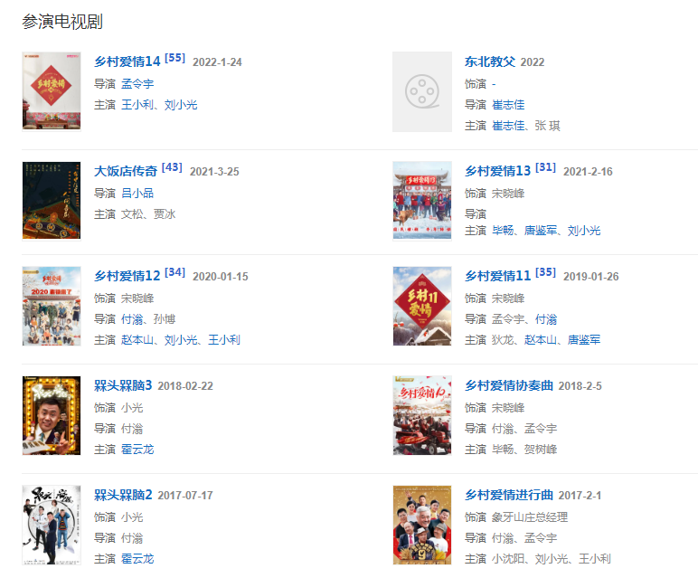 代表作品:鄉(xiāng)村愛(ài)情、山炮進(jìn)城、親愛(ài)的姑娘、槑頭槑腦