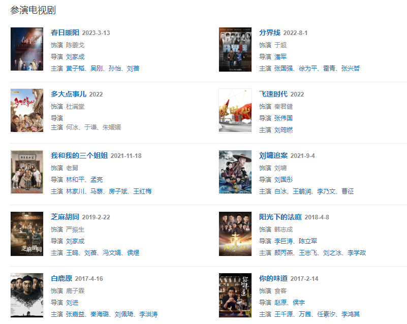 2017年,在年代劇《白鹿原》中飾演鹿子霖 ;