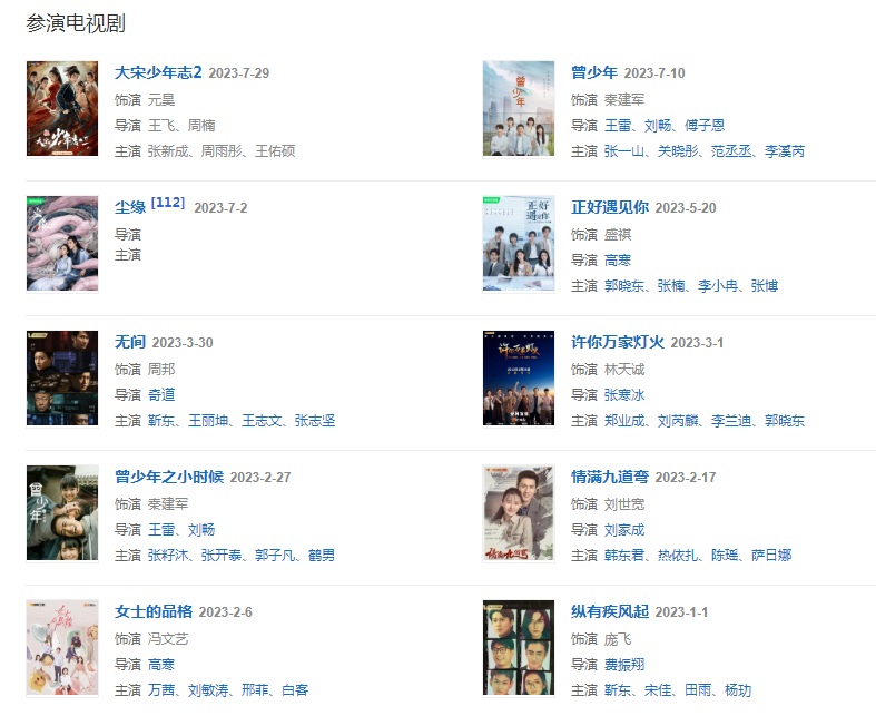 代表作品:西游記之大鬧天宮、一半海水一半火焰、有你才幸福、工人大院