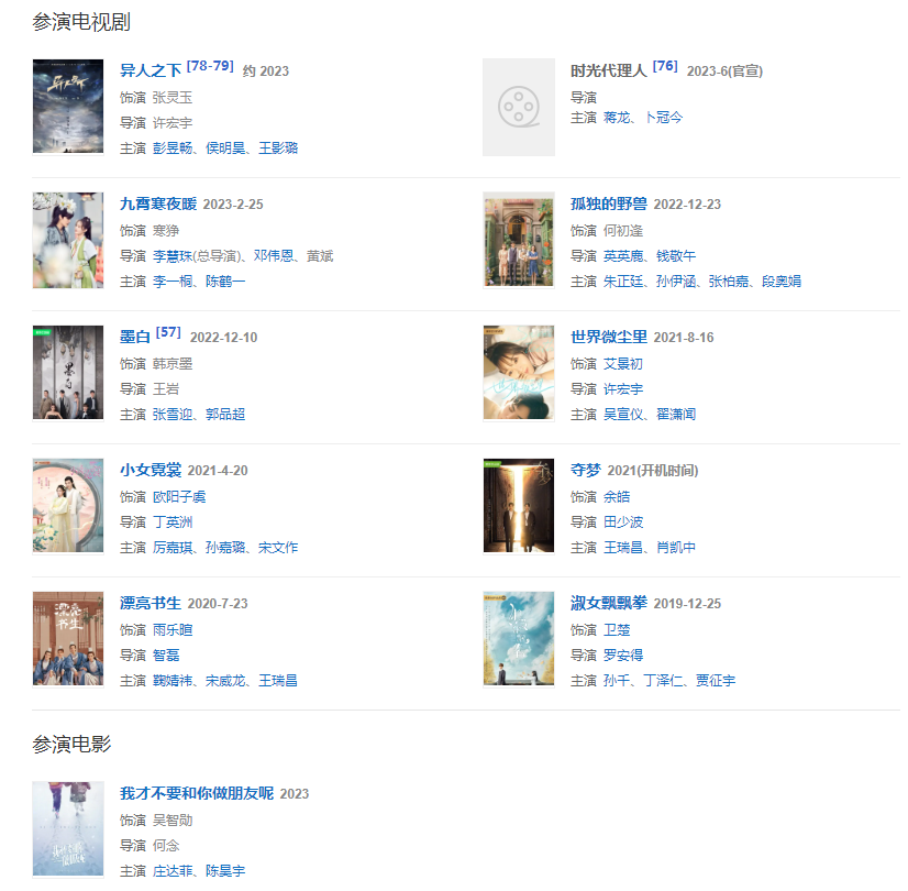 2023年2月,特邀的電影《我才不要和你做朋友呢》開機(jī);2月25日,與李一桐搭檔主演的古裝愛情探案劇《九霄寒夜暖》播出,飾演猉族“內(nèi)熱”少主寒猙;5月6日,參加的音樂文化交流節(jié)目《聲生不息·寶島季》播出;5月,參加演唱中國(guó)電影華表獎(jiǎng)主題推廣曲《光輝》;2023年6月,出演的電視劇《時(shí)光代理人》開機(jī);8月4日,參演電視劇《異人之下》播出。