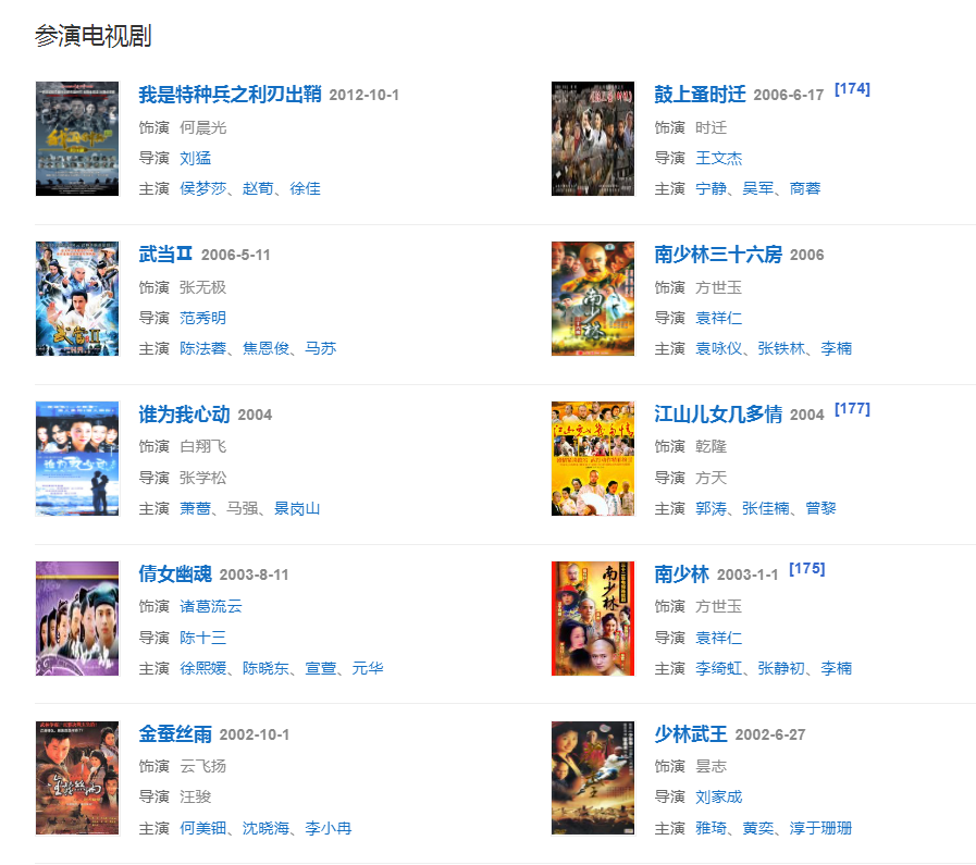 1999年主演武俠劇《小李飛刀》。