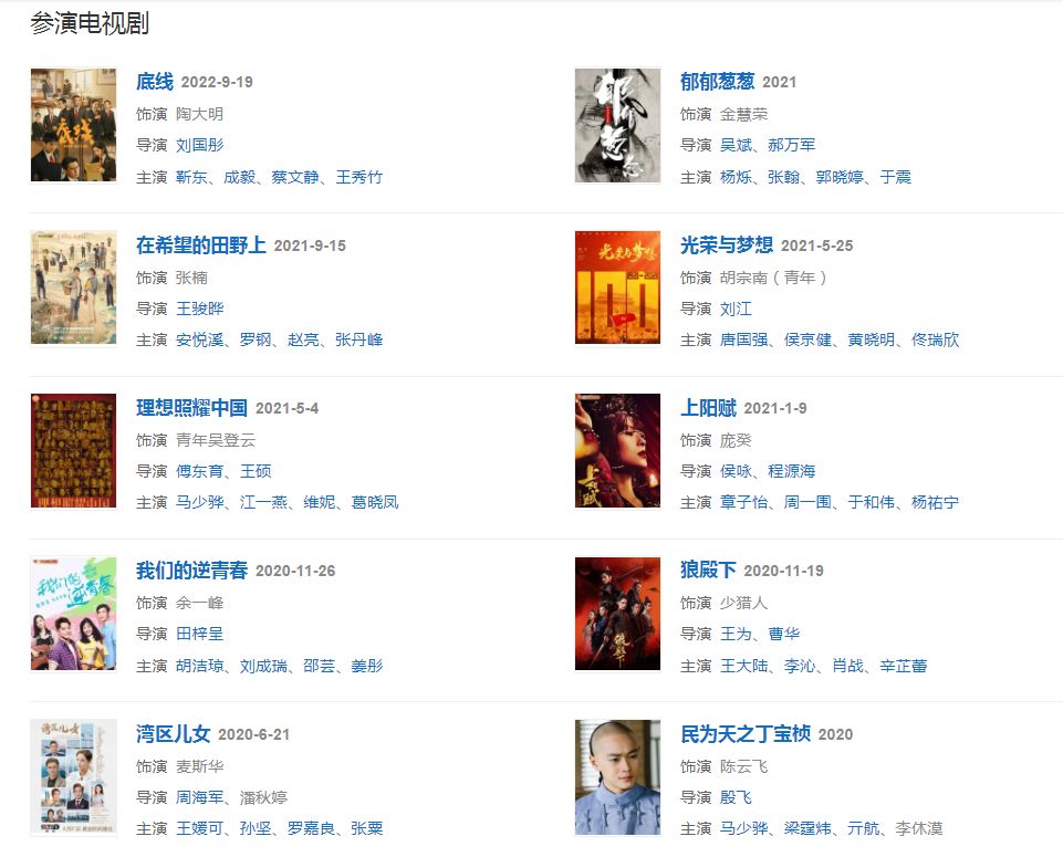 2021年5月25日,出演的重大革命歷史題材劇《光榮與夢(mèng)想》在北京衛(wèi)視、東方衛(wèi)視及騰訊視頻、愛奇藝、優(yōu)酷同步播出 ;9月15日,與安悅溪主演的電視劇《在希望的田野上》在騰訊視頻播出;參演電影《1921》; 參演電視劇《理想照耀中國》。